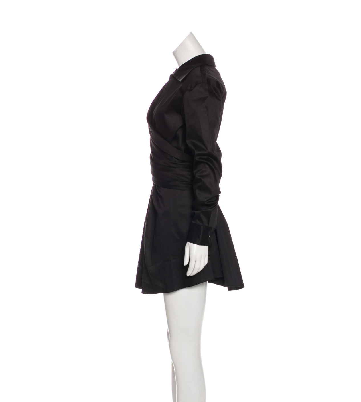 OPENING CEREMONY Black Vintage long sleeve mini dress with pointed collar, draping detail at open waist and exposed button closure at the back